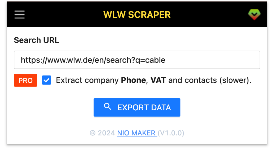 wlw scraper helps you scrape company search results. with key contacts, work email and phone number, Save Germany business lead list to CSV / Excel / JSON.